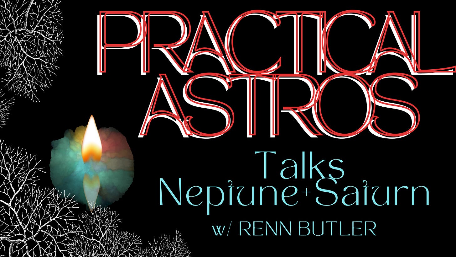 Walk the P.A.T.H. with Practical Astros’ Temperance Hour Today Christa talks with author & teacher, Renn Butler, about the dynamic planetary pairing of Neptune & Saturn. This is an introductory episode on the subject that will be revisited in 2026 for a full length conversation on these two planets as they join together in Aries. Temperance Hour is a space to talk to astrologers, diviners, tarotistas and artists about their practice, journey & art form. We all walk paths in the same patch of woods on this blue green marble wandering through space. You can find Renn’s work at his website: