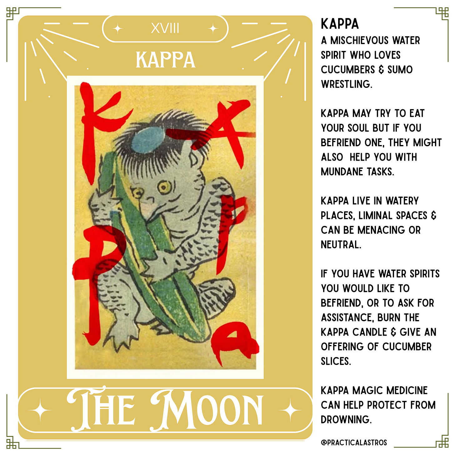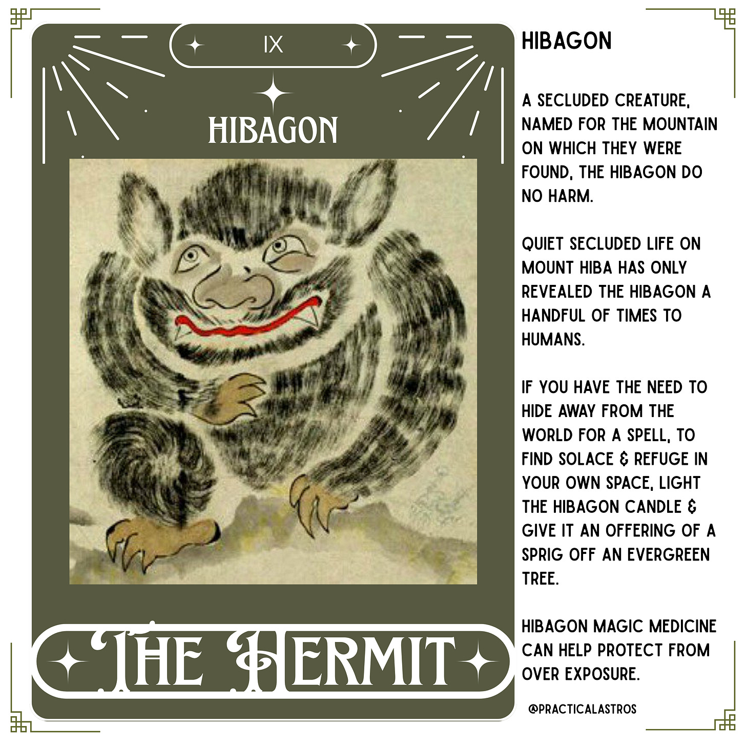 Over the weekend, I read for a flurry of people at a Cryptid themed dark market. I’ve read for this event before and it’s usually around the eclipses. For this one, I made yokai inspired tarot prayer candles. I’ll drop some images below and if you want me to email you the file, you can print them off and afix to a 7” glass prayer candle for your own altar.